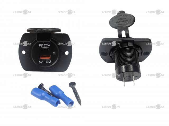 Įkroviklis 12V/24V, 2xUSB 3,1A 15.5W, 3,4A 20W |