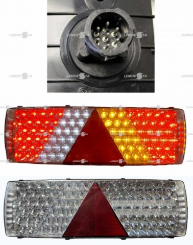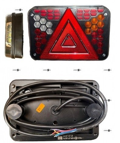 Ilgis 240mm, aukštis 140mm, storis 52mm, tarp varžtų 152mm. Nr. apšvietimas, priešrūkinis, atbulinis, stabdis, posūkis, gabaritas. Su varža- klaidų "apgaviku" |