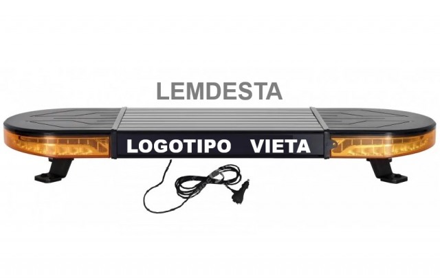 Ilgis 1002mm x plotis 298mm x aukštis 63mm,Aukštis su kojelėmis 122mm. ECE R10, R65, TA2. IP65, 60 W. 48 Led. Oranžinis. Yra juostelė logotipui. TIK PAGAL IŠANKSTINĮ UŽSAKYMĄ.