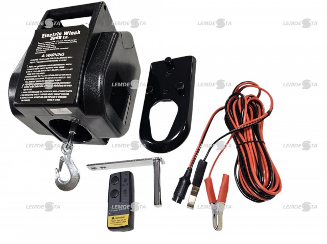 Gervė el. 12V, 3000LBS, 1360 kg, 15,2m, sintetinis lynas, belaidis pultas |