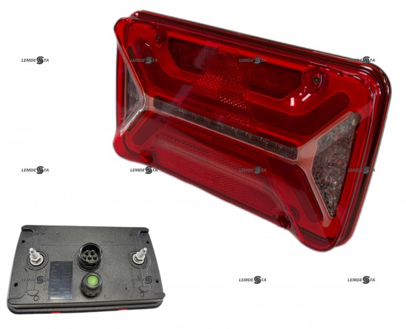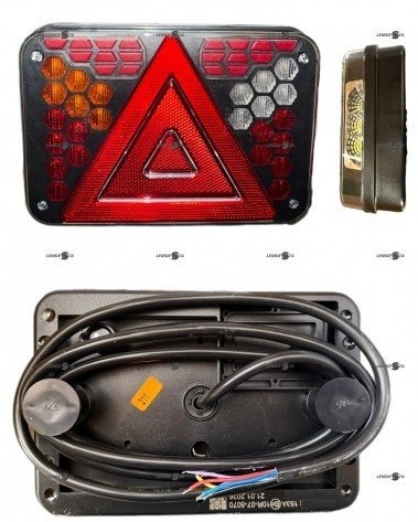 Ilgis 200mm, aukštis 140mm, storis 51mm. Tarp tvirtinimo taškų 152mm. Posūkis, gabaritas, nr.apšvietimas, atbulinė eiga, priešrūkinis. IP68 EMC R10. -30°C - +50°C 45 LED |